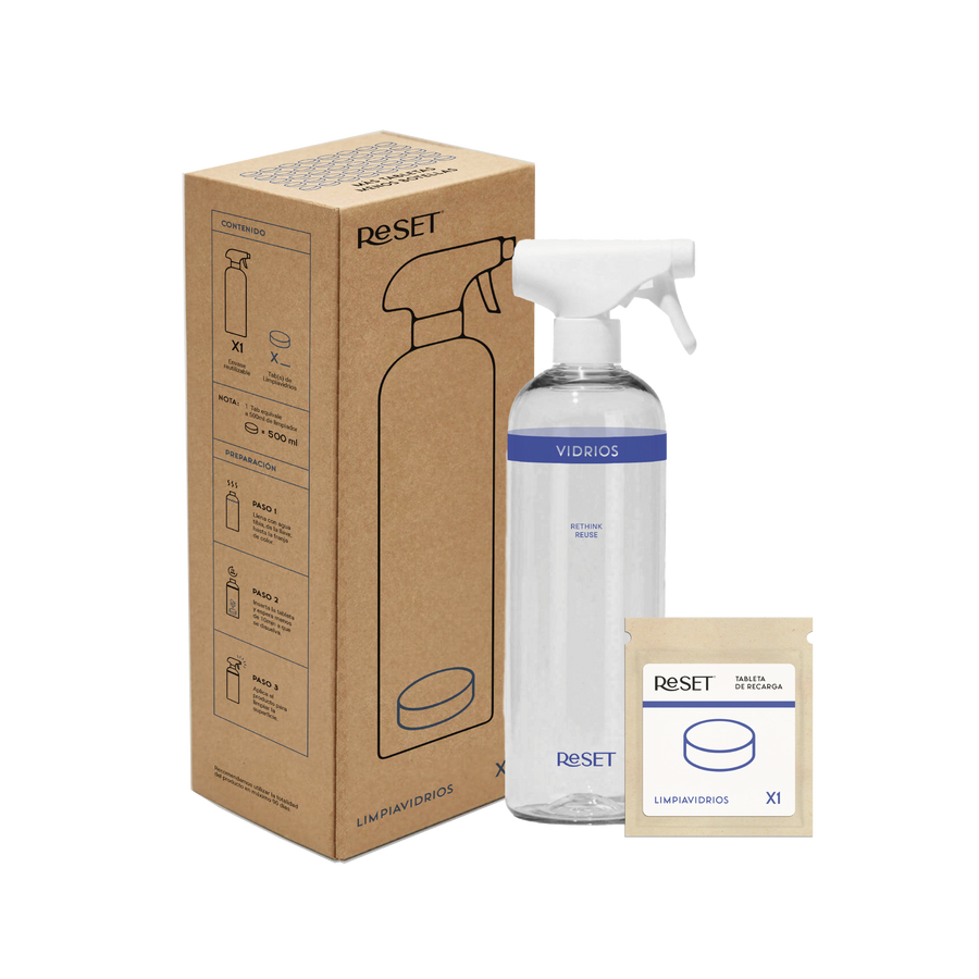 Cada tab (pastilla) de limpiavidrios Reset se disuelve rápida y fácilmente en 500 ml de agua tibia para convertirse en un eficiente limpiavidrios y limpiacristales.