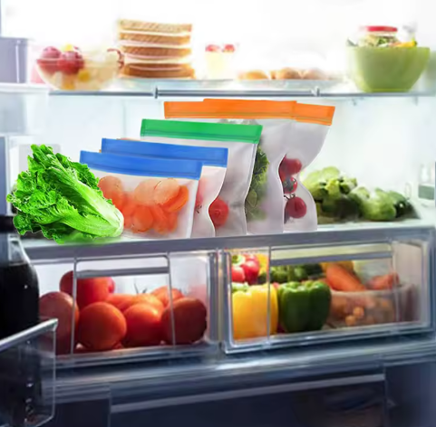 - Son elaboradas en material ecológico PEVA, no tóxico, seguro para almacenar alimentos, material duradero de alta calidad. Libres de BPA.