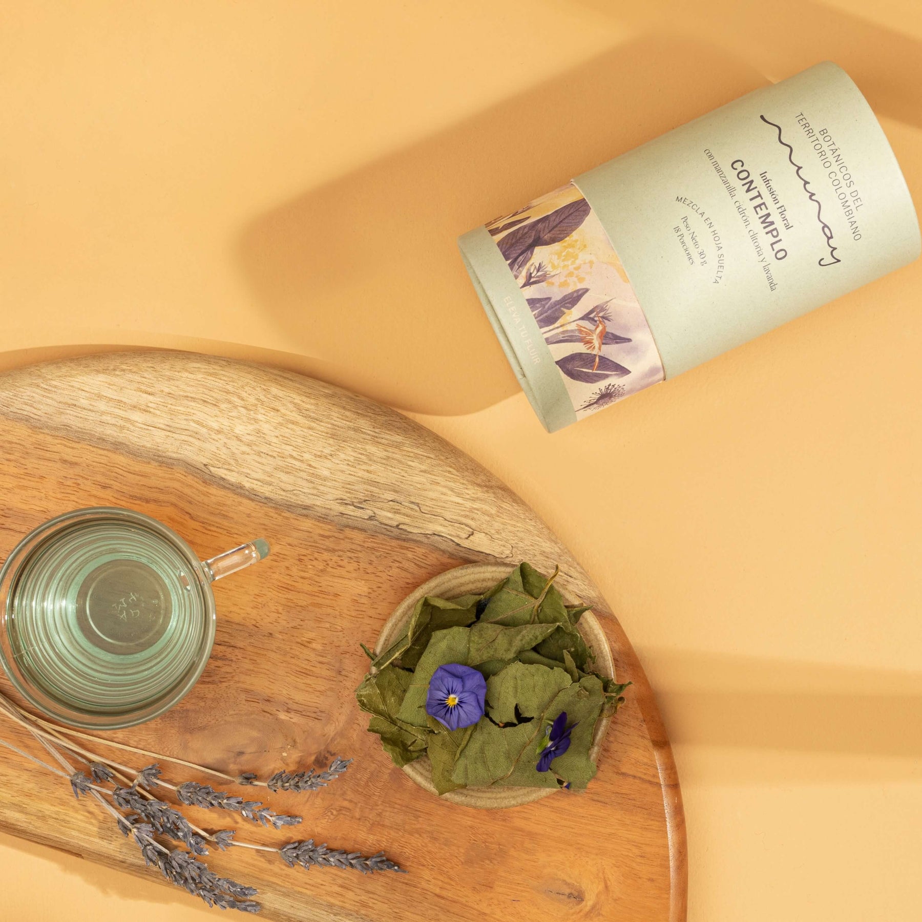 La Infusión floral Contemplo de Munay es una mezcla diseñada pensando en relajar y en el descanso profundo con una mezcla de plantas tradicionalmente relajantes y nervines que alivian estados de estrés y ansiedad. Limonaria, cidrón, clitorea, manzanilla , lavanda y pasiflora