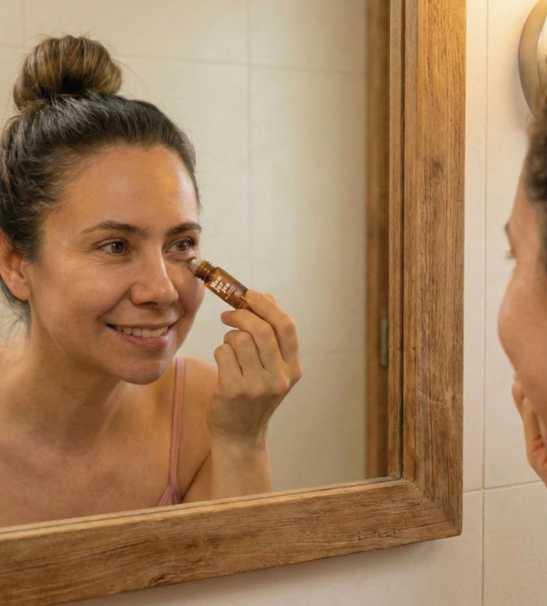 Mantenlo en tu mesita de noche y antes de irte a la cama, pon el aceite abundantemente alrededor de los ojos, incluyendo pestañas y cejas. Amanecerás con el contorno de tus ojos suave, hidratado y saludable. Úsalo todas las noches y verás resultados sorprendentes.
